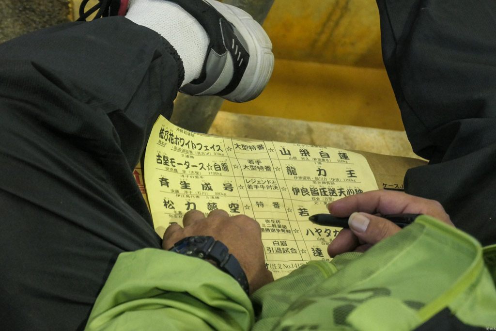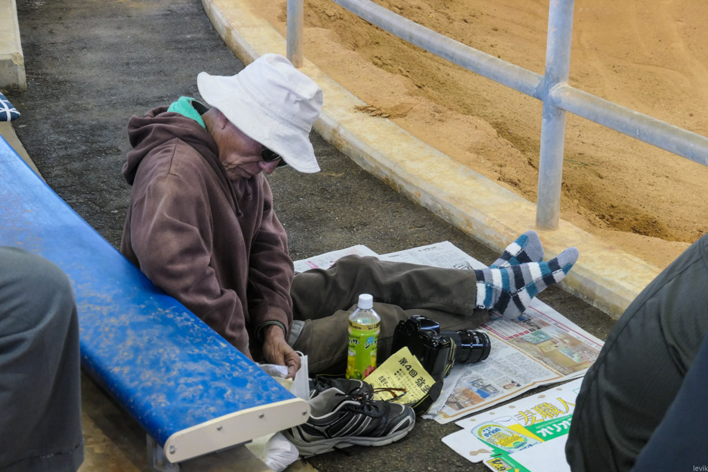 23. Сидящий передо мной мужик активно что-то обводил в программе, возможно решая на кого из соперников ставить деньги.