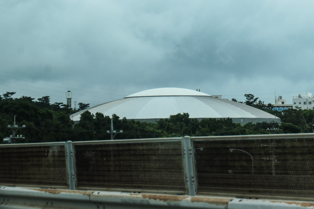 1. Надо сказать, что арена для боя быков находится довольно далеко от города Наха, столицы Окинавы. Чтобы добраться до неё мне пришлось целый час ехать на такси! Это вышло так дорого, что на обратном пути я был вынужден разобраться с местными автобусами. Арена находится в городке Исикава, и формой своей напоминает классическую летающую тарелку из фантастических фильмов середины ХХ века.