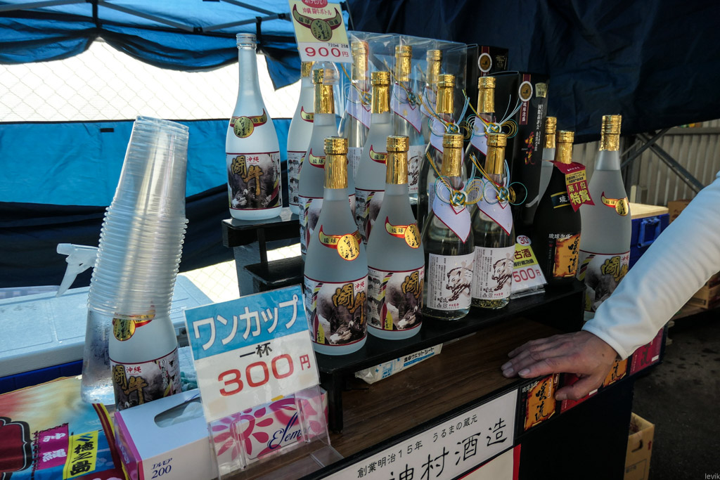 11. Рядом продают авомори, традиционный крепко-алкогольный напиток Окинавы. Он чем-то напоминает сётю, который делают на главный японских островах. Содержание спирта может быть от 30 до 60 процентов. И вот такого прекрасного напитка за 300 иен тебе наливают полный стакан.