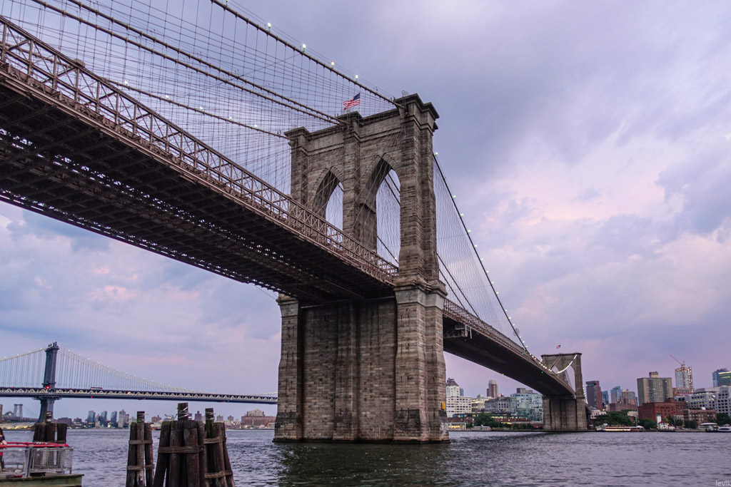 Сегодня, во время прогулки с друзьями по Нью Йорку, я оказался на берегу Ист-ривер между Бруклинским и Манхэттенским мостами. На бруклинской стороне они подходят довольно близко друг к другу - там находится моё любимое место в городе. А вот напротив, со стороны Манхэттена, я бываю крайне редко. Сюда вообще нечасто заходят люди, не живущие в этих районах. А зря - вид отсюда на два главных моста Нью Йорка просто великолепный.