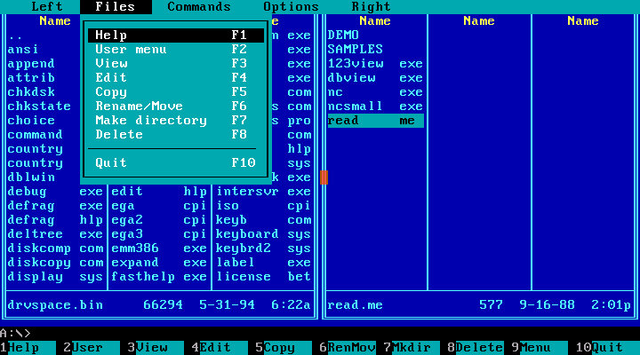 Так вот, эти компьютеры автоматом загружались в Norton Commander. Кто помнит этот приветливый синий экран, который спасал нас от страшной чёрной командной строки, до того, как появились Windows?