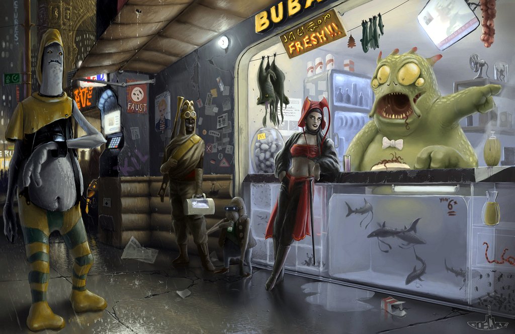 "Ну это такая пивная," объяснил Костя. "Кабак. Но это бессмыслица. Что за космический кабак?"