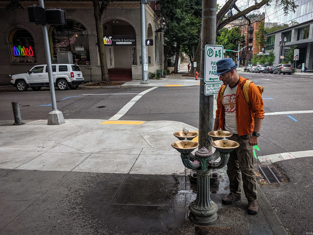 6. А ещё я видел в на улицах Портленда вот такие, одиночные бабблеры. И напор в них ничуть не лучше. Но как с ними быть уже совсем непонятно.