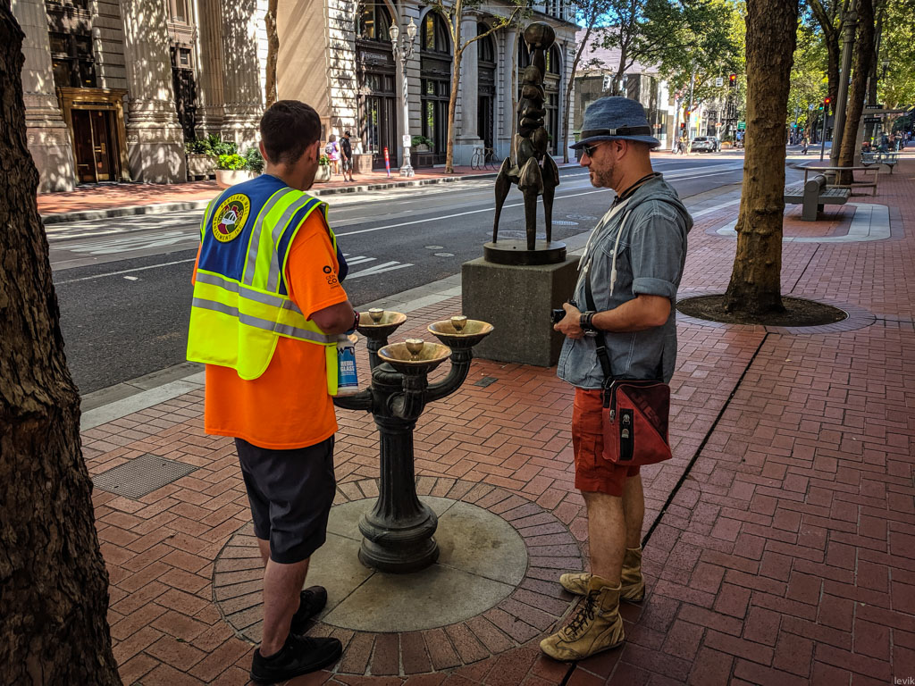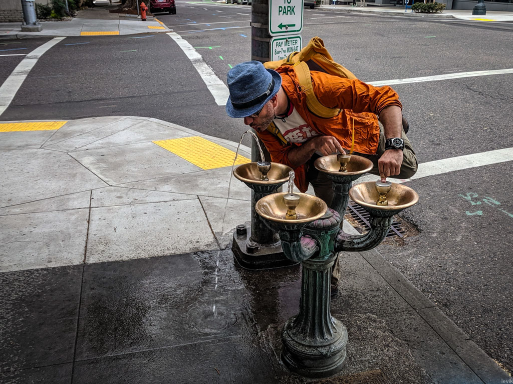 Прилетел я в Портленд (штат Орегон). Гуляю себе по даунтауну, никого не трогаю. Вдруг смотрю, на тротуаре передо мной питьевой фонтанчик. Необычный такой - никогда мне раньше такие не попадались. Можно даже сказать, четырёхствольный!