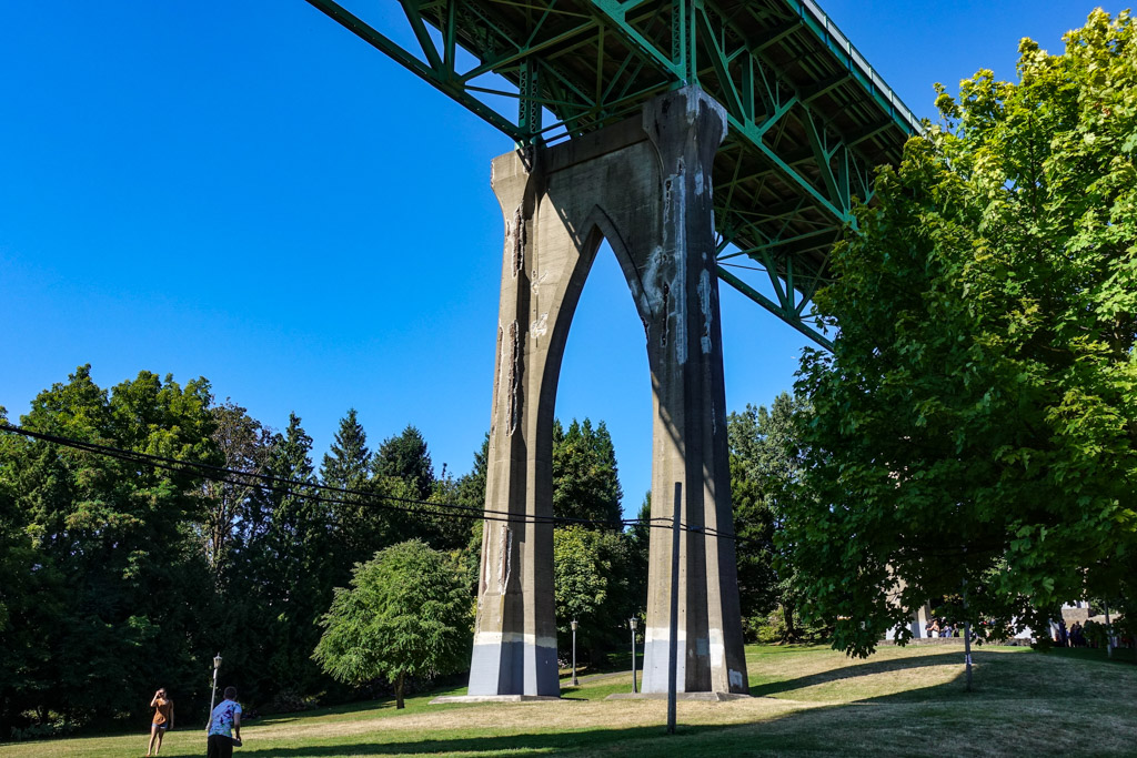 16. Именно из-за этого, существующий тут парк так и назвали - Cathedral Park (парк собора). У парка неприятная история. В 1940х, в Портленде похитили 15-летнюю девушку. Похититель держал её тут, под мостом, а потом убил. Тогда здесь мало кто жил, район было довольно отдалённым от центра города. После этого случая место много лет пустовало, сюда сбрасывали мусор. Город приобрёл эту землю 20 лет спустя, а в 1980 году открыл здесь парк. Некоторые жители считают его проклятым по сей день.