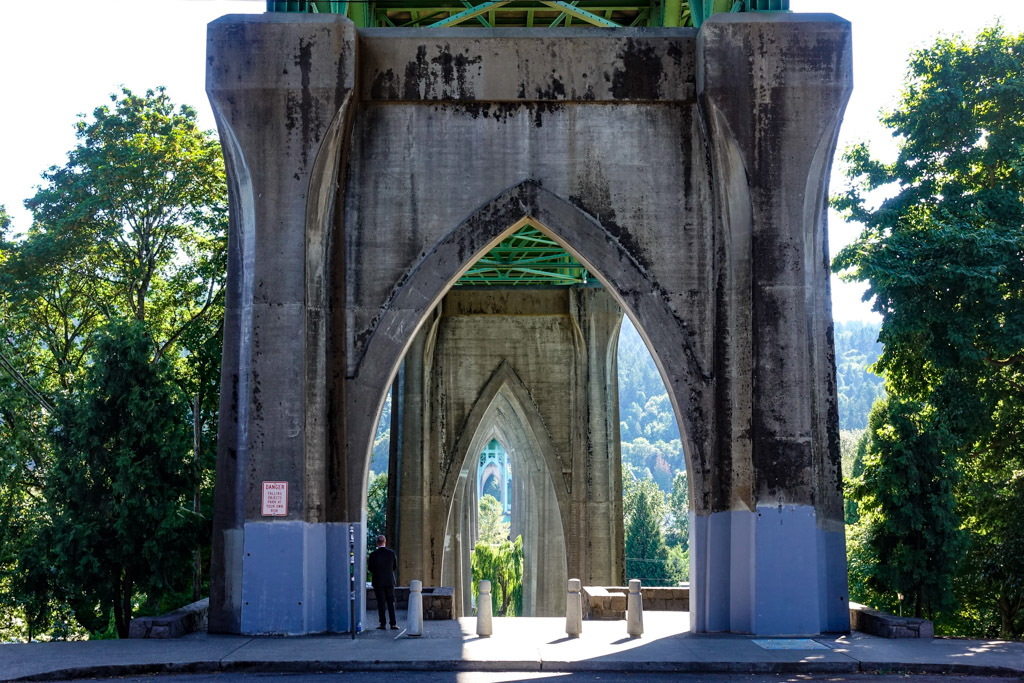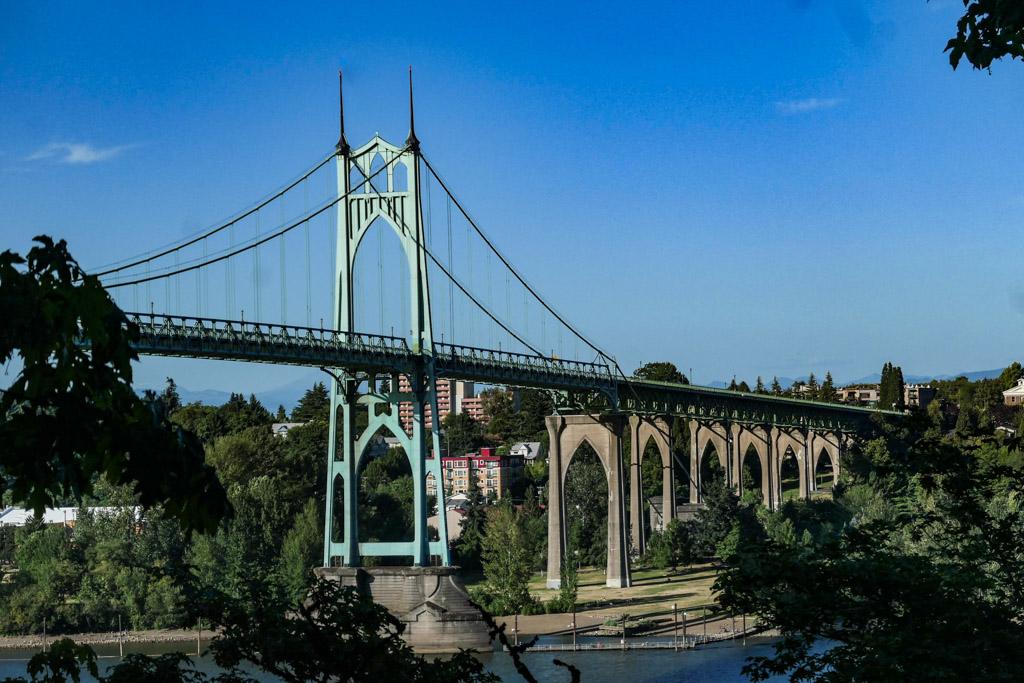 2. Мост Сент-Джонс (St. Johns Bridge) стал первым подвесным мостом в городе, его построили достаточно высоким, чтоб разводной механизм не требовался. На момент строительства, это был самый высокий мост в стране, и самый длинный в её западной части. Его длина - 630 метров, что где-то в три раза короче, чем Бруклинской Мост, построенный в Нью Йорке на полвека раньше.