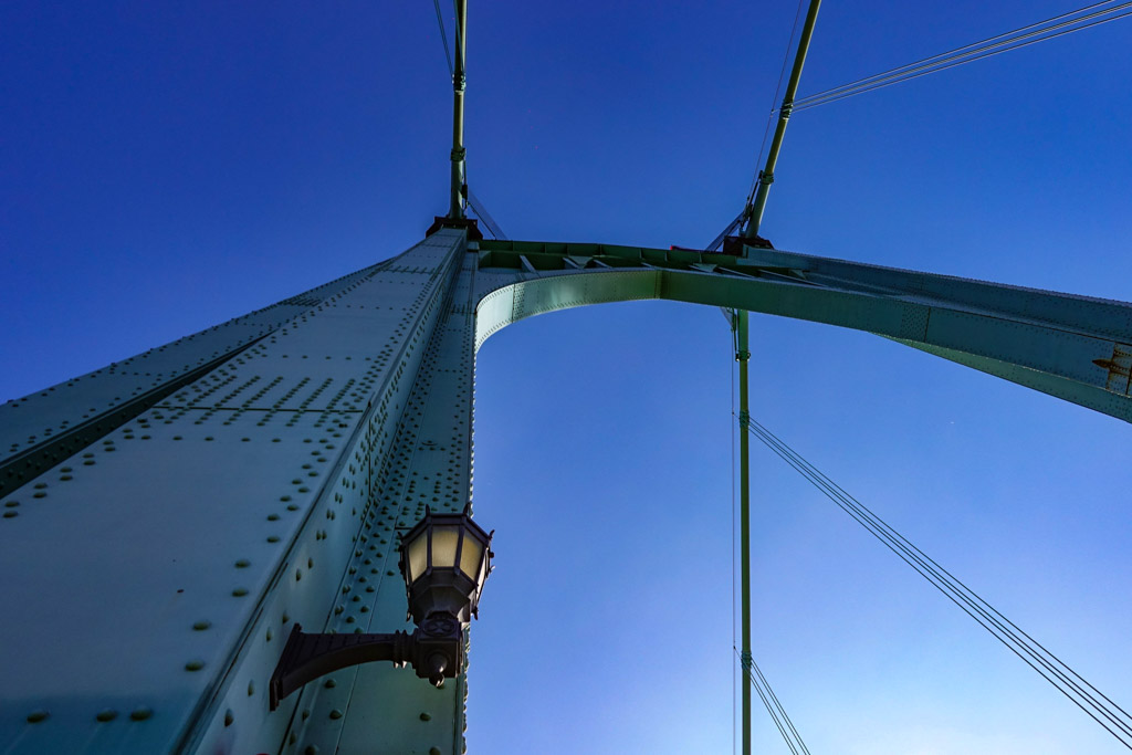 4. Мост построен в неоготическом архитектурном стиле. Его металлические пилоны тянутся вверх изящными линиями, а в конструкции повсюду повторяется форма свода готических соборов средневековья.