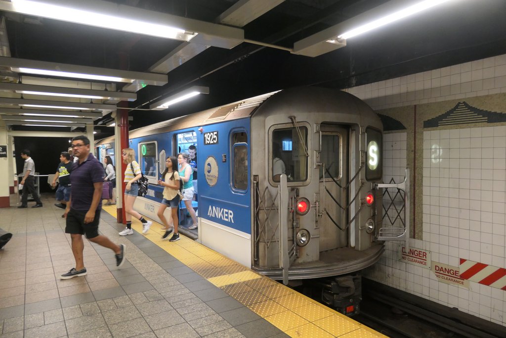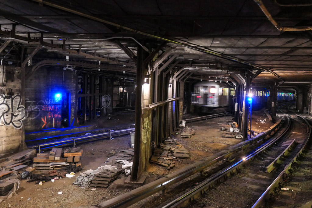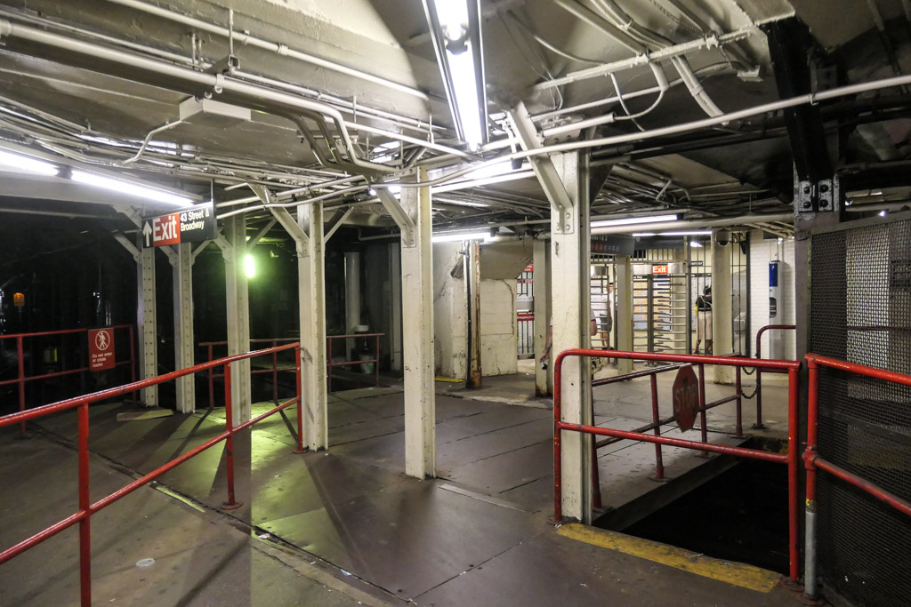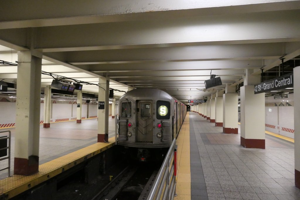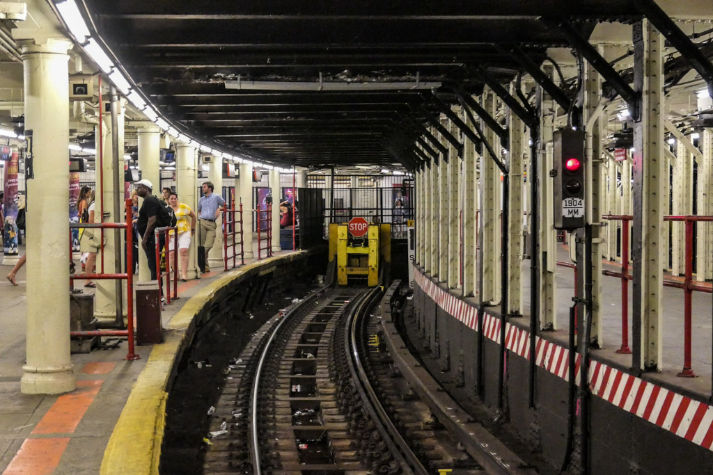 31. Иногда отсюда видно, как по соседней линии проходит полноценный состав метро! (Если кому интересно, то это остановка шаттла, что на Таймс Сквер.)