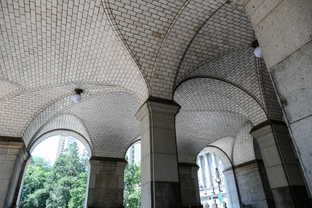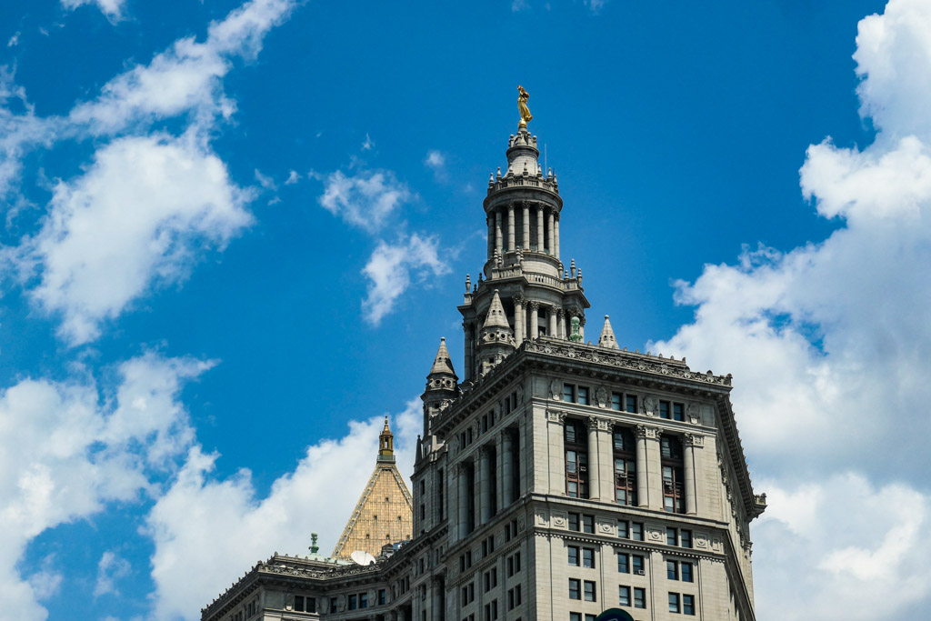 1. Начнём мы в даунтауне Манхэттена, возле входа на знаменитый Бруклинский мост. Тут стоит великолепная высотка начала ХХ века. Муниципальное здание Манхэттена увенчано неоклассической ротондой, на крыше которой стоит позолоченная статуя Гражданской Славы. Нам с вами, в контексте сегодняшней прогулки, эта высотка интересна потому, что стала первым зданием, в которое была встроена станция метро.