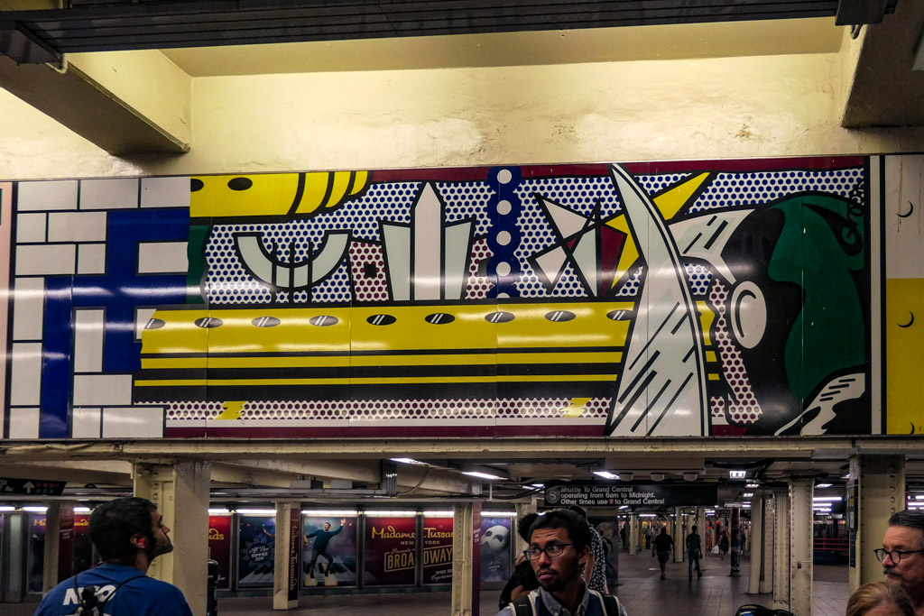 13. А вот нечто посовременней. Это 42я стрит, искусство в стиле Pop-Art, специально заказанное властями для метро.