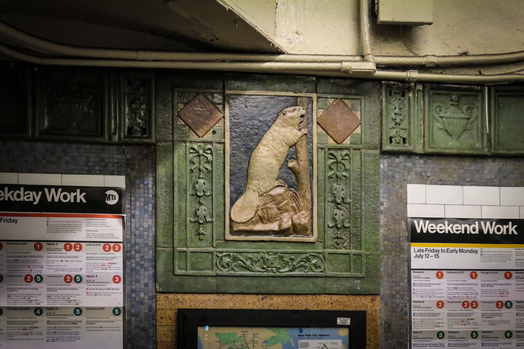 8. Вот ещё одна деталь Astor Place: когда метро ещё только строилось, создатели хотели сделать его максимально доступным для жителей Нью Йорка. А ведь он всегда был городом иммигрантов - именно сюда привозили океанские лайнеры переселенцев из Европы. И многие из тех, кто жил тут, не знал английского, не умели читать или писать. Чтобы помочь таким людям ориентироваться в метро, строители украсили остановки тематическими картинками. Например, Astor Place названа в честь Джона Джекоба Астора, промышленника, который начал свою успешную карьеру торгуя мехами, а именно, шкурами бобра. Поэтому на остановке, носящей его имя и был изображён бобёр.