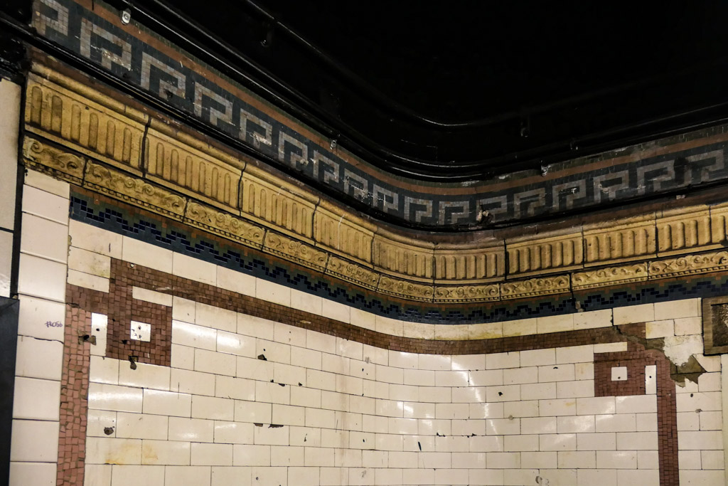 10. Вообще, ранние станции метро были довольно богато (по тем временам) украшены кафелем и мозаикой - разумеется, это не сталинские дворцы московского метрополитена, всё же в Нью Йорке метро строилось частными компаниями, которые не хотели разбрасываться деньгами. Но было приложено много усилий сделать подземные помещения максимально приятными.