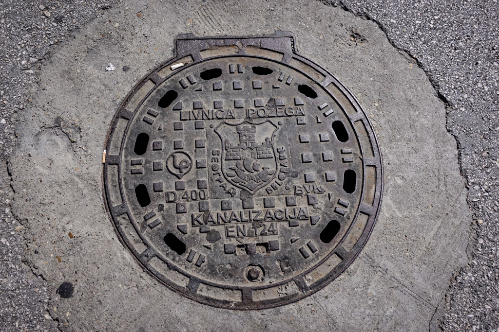 11. А вот канализационный люк - он на латинице. Хотя вроде это как минимум городская штука. Но очевидно, закон о государственной кириллице на не распространяется на Kanalizacija.