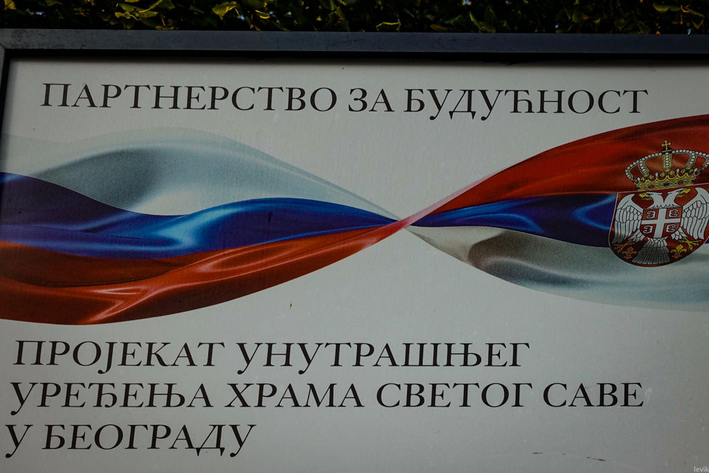 1. Несколько раз в Белграде видел плакаты о совместных сербско-российских проектах, где тема перевёрнутого триколора была обыграна в виде перекрученной ленточки. Мол наши страны - две стороны одного знамени.