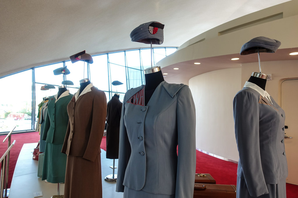 6. Кстати, о формах. Появилась и небольшая выставка классической одежды бортпроводниц авиакомпании TWA. (Я, правда, уже нечто похожее видел в их филиале во Всемирном Торговом Центре.) Любопытно, что дизайнеры решили вырезать название авиакомпании прямо на пиджаках формы!