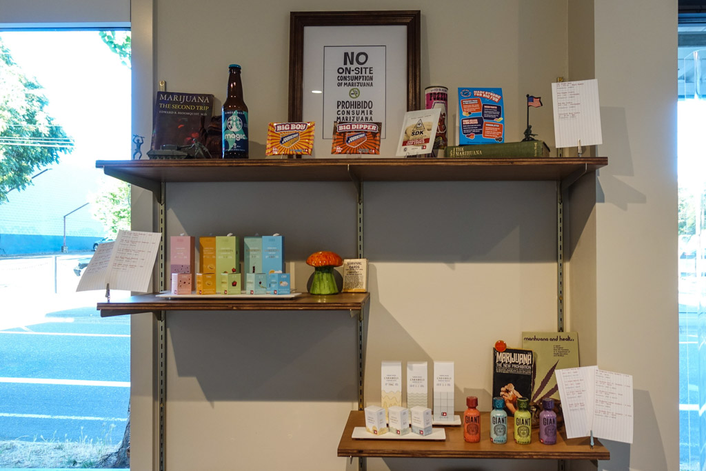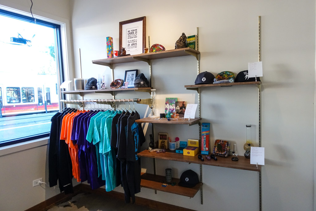 Магазин был просторным, и в нём стояло много полок различного мерча, и около-марихуановых продуктов. Трубки, майки, спички, всё что может понадобиться заядлому курильщику.