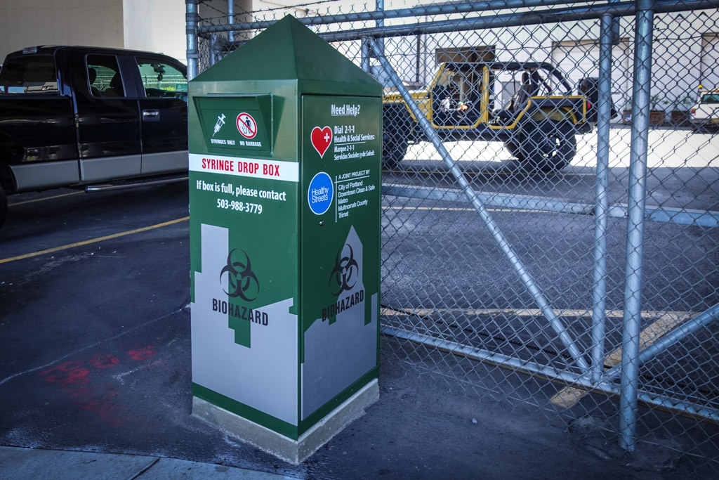 17. Вообще Портленд довольно толерантен к наркотикам, даже тем, что ещё не успели легализовать. Например, на улице мне повстречалась специальная мусорка для одноразовых шприцов. Чтоб люди их на улицу не выкидывали.