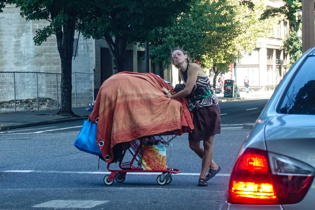 2. Так что же такого причудливого в Портленде? В первую очередь в глаза бросаются бомжи. Портлендские бомжи неплохо оборудованы, у многих есть тележки, в которых можно перевозить все пожитки.