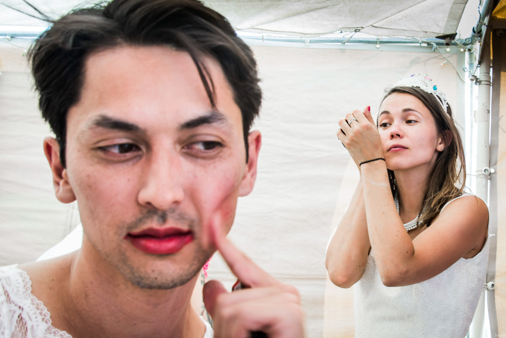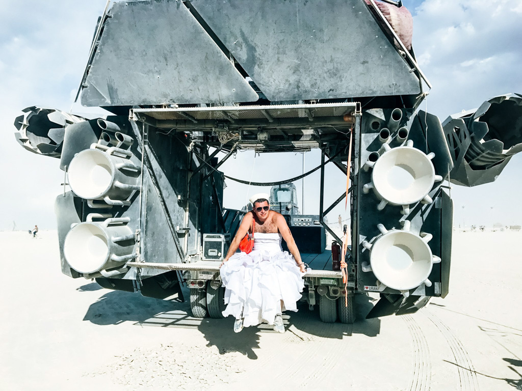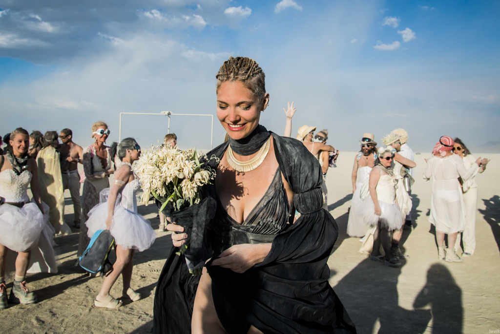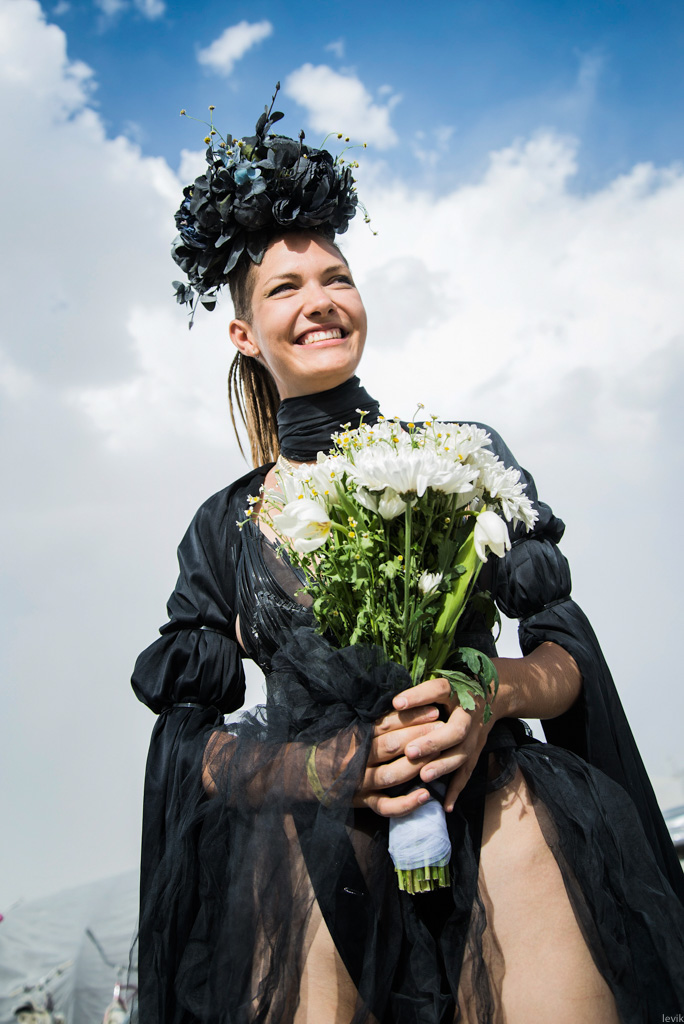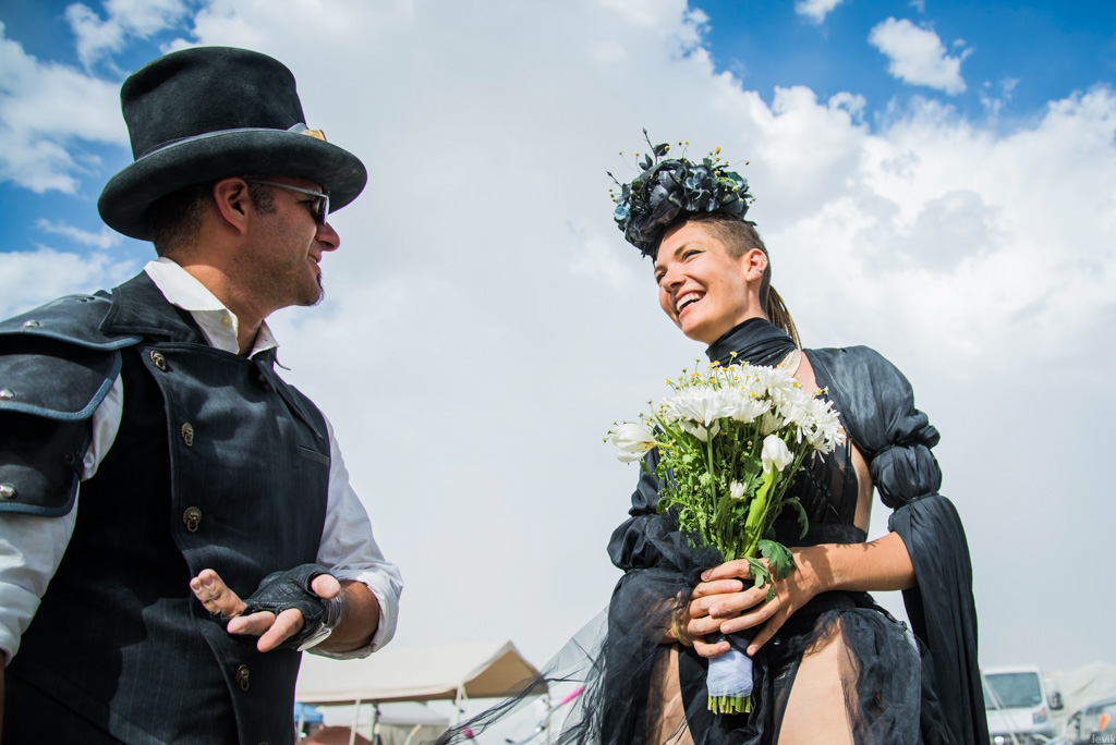 1. Устроить свадьбу на Бёрнинг Мэне мы решили почти сразу. В конце концов, именно здесь, ещё на год раньше, Тоня сделала мне предложение. Планировали мы это мероприятие большую часть лета. Было решено устроить церемонию в середине недели, в среду. Бывалые бёрнеры знают, что среда на БМ - "white wednesday", день, когда все одеваются в белое. Поэтому мы решили, что выделимся на общем фоне, и нарядимся в чёрный цвет (он, кстати, Тонин любимый).