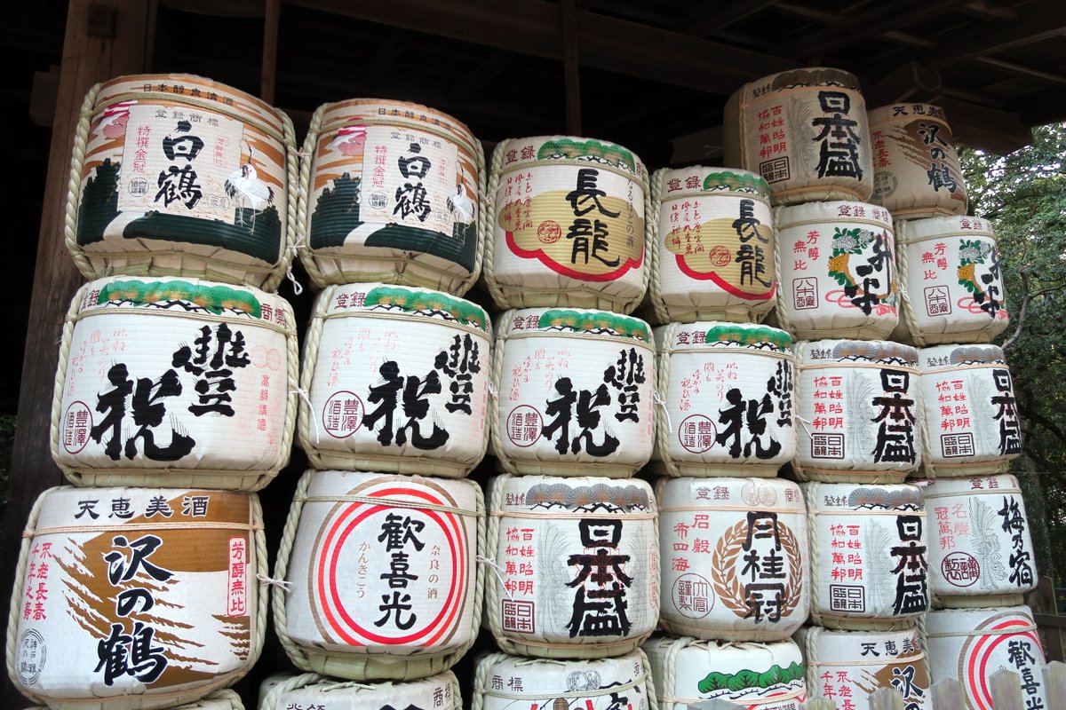 Традиционно саке перевозят и хранят в бочках обтянутых плетёной соломой. На неё нанесена марка производителя.
