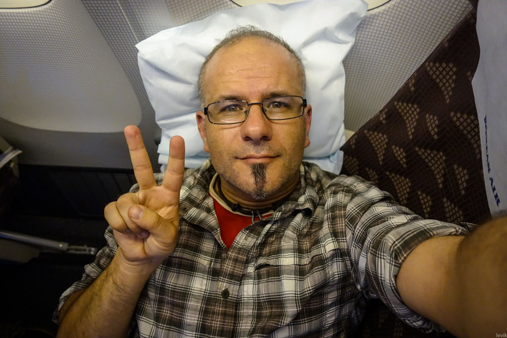 26. Я вытянулся и заснул на всю дорогу. Даже от еды отказался. Это конечно не очень соответствовало моей стратегии жить по новому времени (в Азии было три часа дня), но как можно упустить шанс вытянутся в экономе? Никак, вот как.