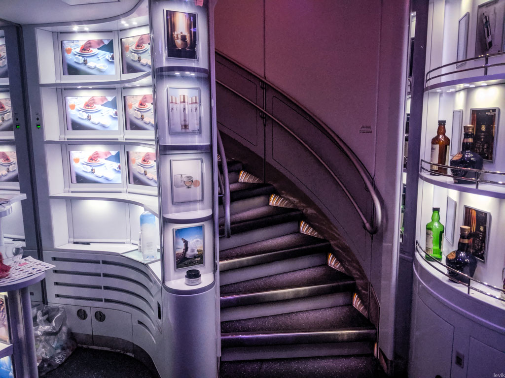 18. Бизнес-класс у них тоже ничего, если что. Там на втором этаже, над магазином дьюти-фри находится бар для пассажиров бизнеса. Я, в тот первоклассный перелёт, в него зашёл. Вот так выглядит. Очень прикольно, сидеть в самолёте в баре.