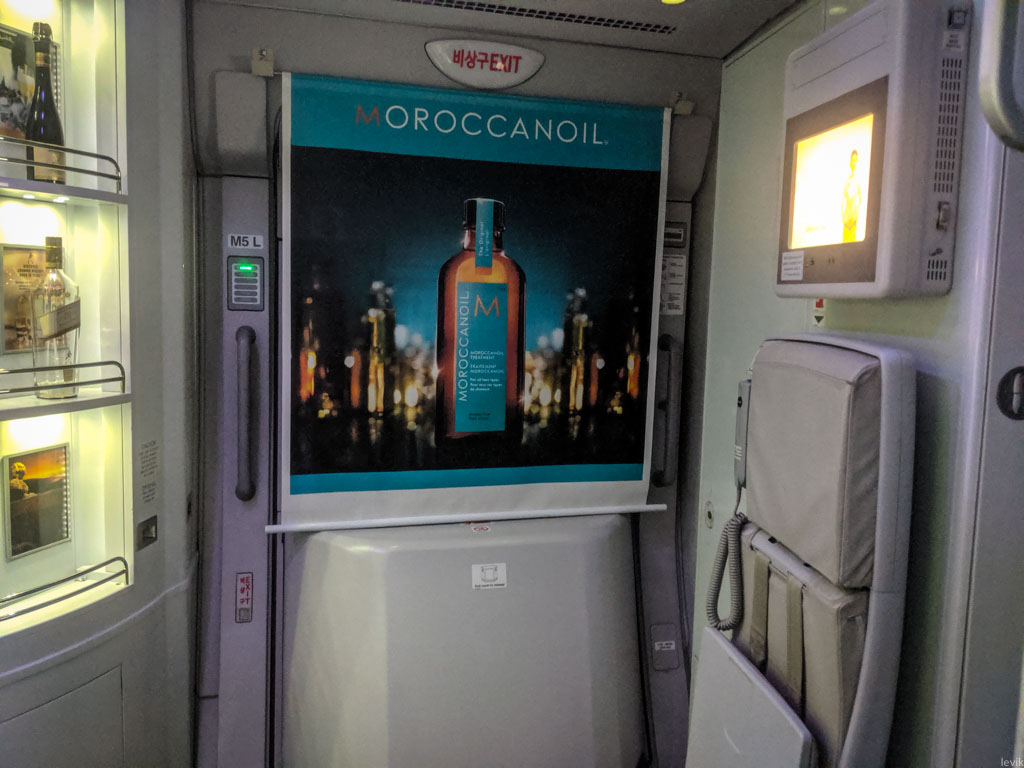 19. А тем временем у нас в экономе я заметил, что двери самолёта завесили рекламой какой-то их косметики.