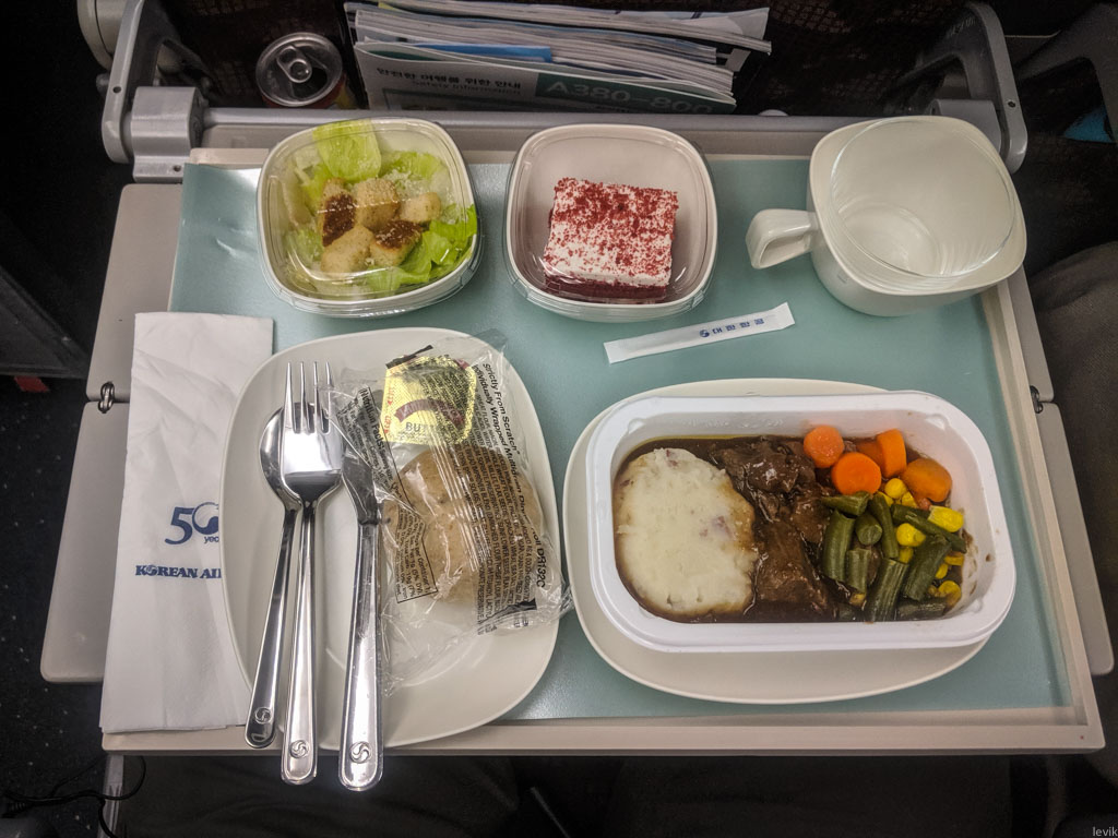 11. Вскоре после взлёта стюардессы начали развозить ужин (было уже около двух ночи). Стюардессы Korean Air все как на подбор молодые и стройные.