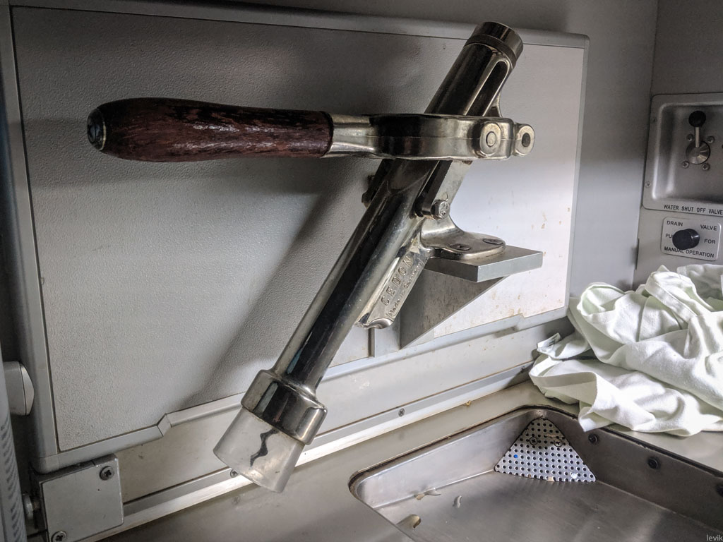 14. На кухне заметил хитрый штопор. Острая часть специально защищена пластмассой, чтоб не поранился никто если заденет эту штуку во время тряски.
