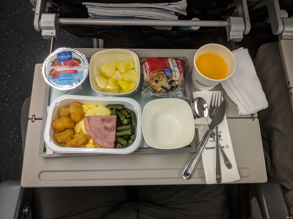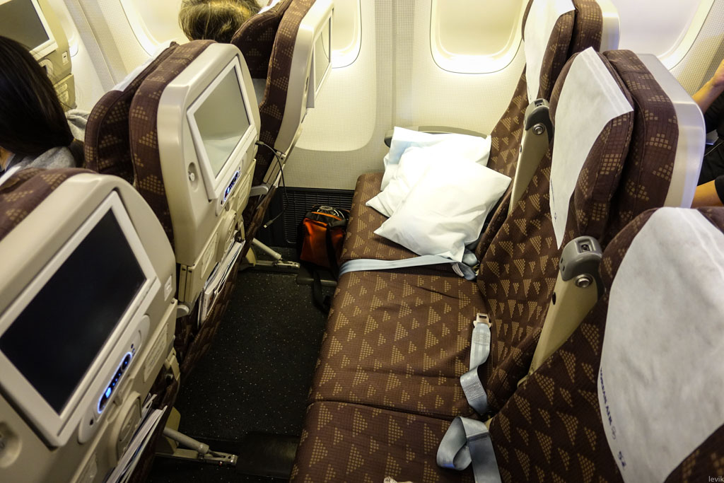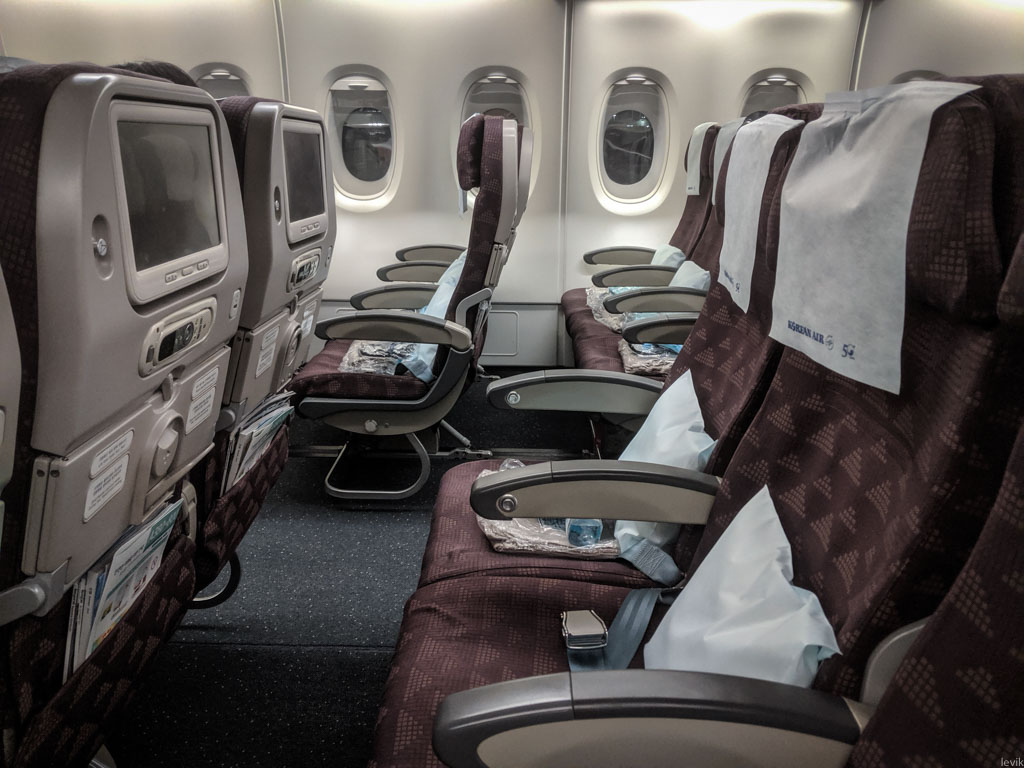 В Сингапур я летел компанией Korean Air, через Сеул. Так вышло, что за этот год я уже летал ими в бизнес-классе и даже в первом. Качество обслуживания в этих салонах мне понравилось, и я решил, что можно доверить свою тушку корейскому эконому, даже на столь далёкий перелёт. А он действительно впечатляет: