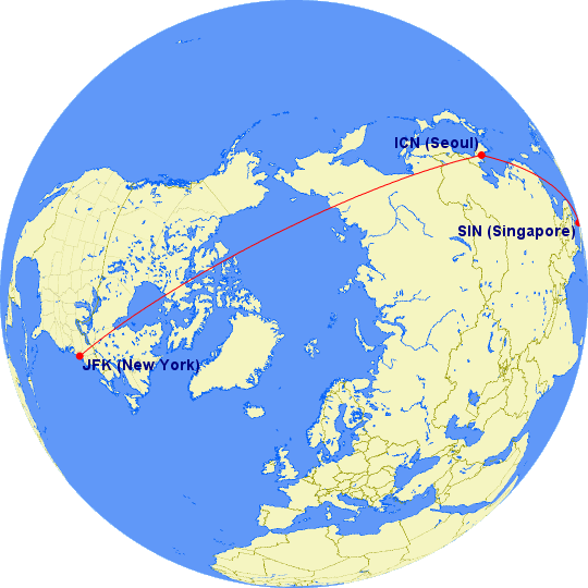 Напомню вам, что Нью Йорк с Сингапуром соединяет самый длинный беспосадочный рейс в мире. Он настолько длинный, что на нём вообще нет эконом-класса!