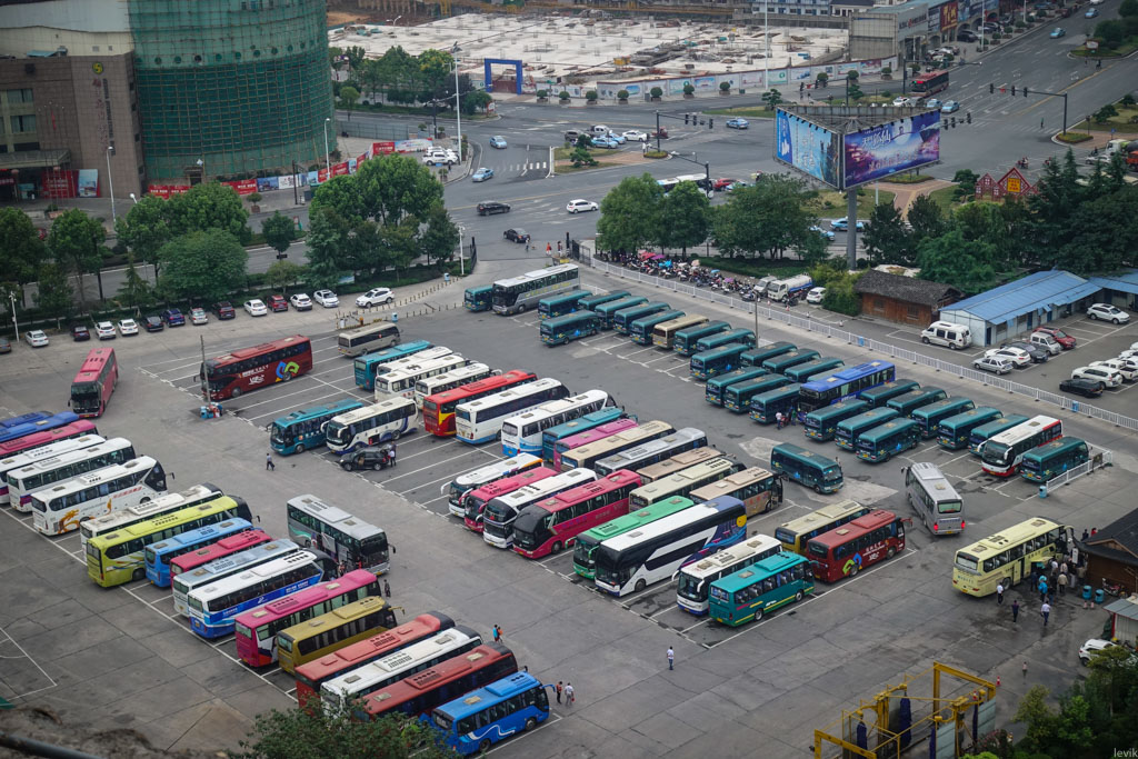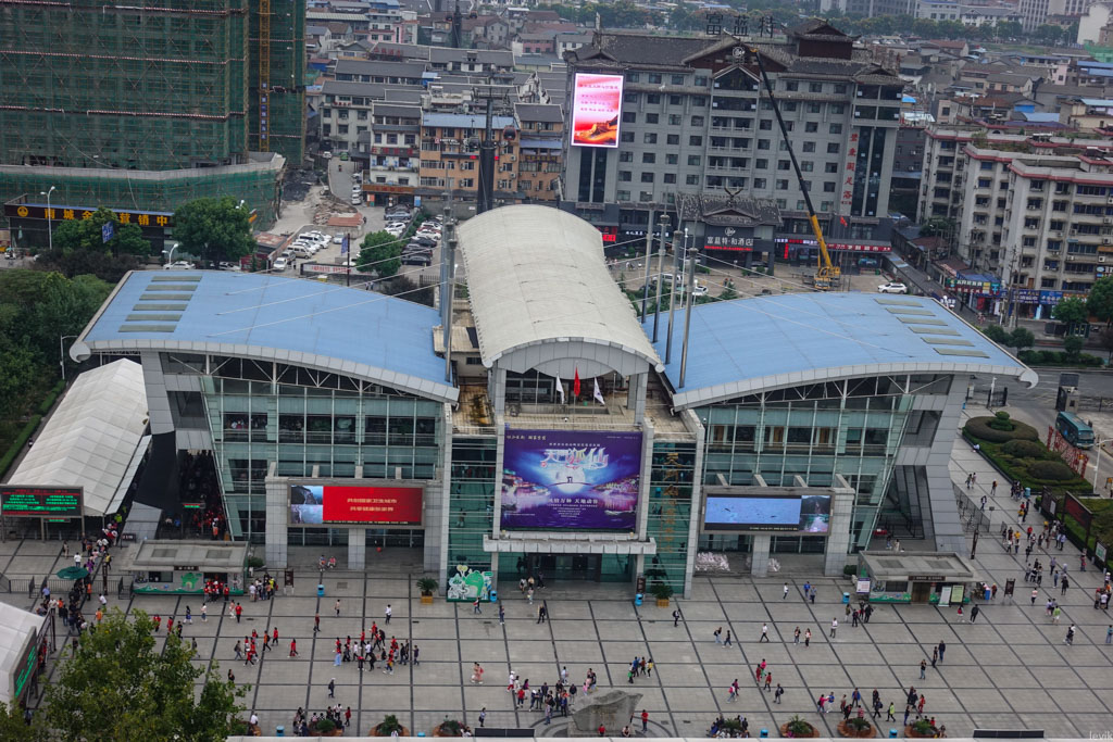 5. Вот он, кстати. Это вид из окна моего отеля. Во многих городах железнодорожные вокзалы поменьше бывают, а тут - всего лишь остановка канатной дороги! И разумеется, перед ней огромная площадь. Всё чисто по-китайски.