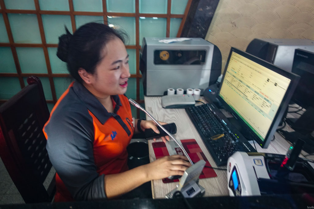 15. Понял, и тут же оказался неправ: какая-то из местных работниц подошла, немного раздвинув двери засунула руку в щель, зацепила велозамок и просто сняла его через верх. Вот такие современные китайские технологии. К счастью, китайцы слишком чтят институт очереди, и никто на рожон не полез ни за этой работницей, ни за дюжиной других, что пришли за следующие полчаса.
