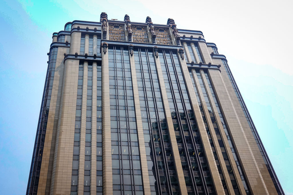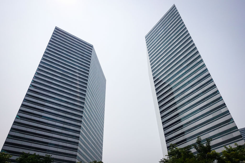 На самом деле это здание было возведено в начале 2000х, и, как мне рассказали местные жители, одной из его важных функций было заткнуть дырку через которую в город струится дурная энергия ци. А что способно создавать такие количества дурной ци, что для защиты он неё нужен целый небоскрёб? Разумеется, другие небоскрёбы, построенные против принципов феншуя.