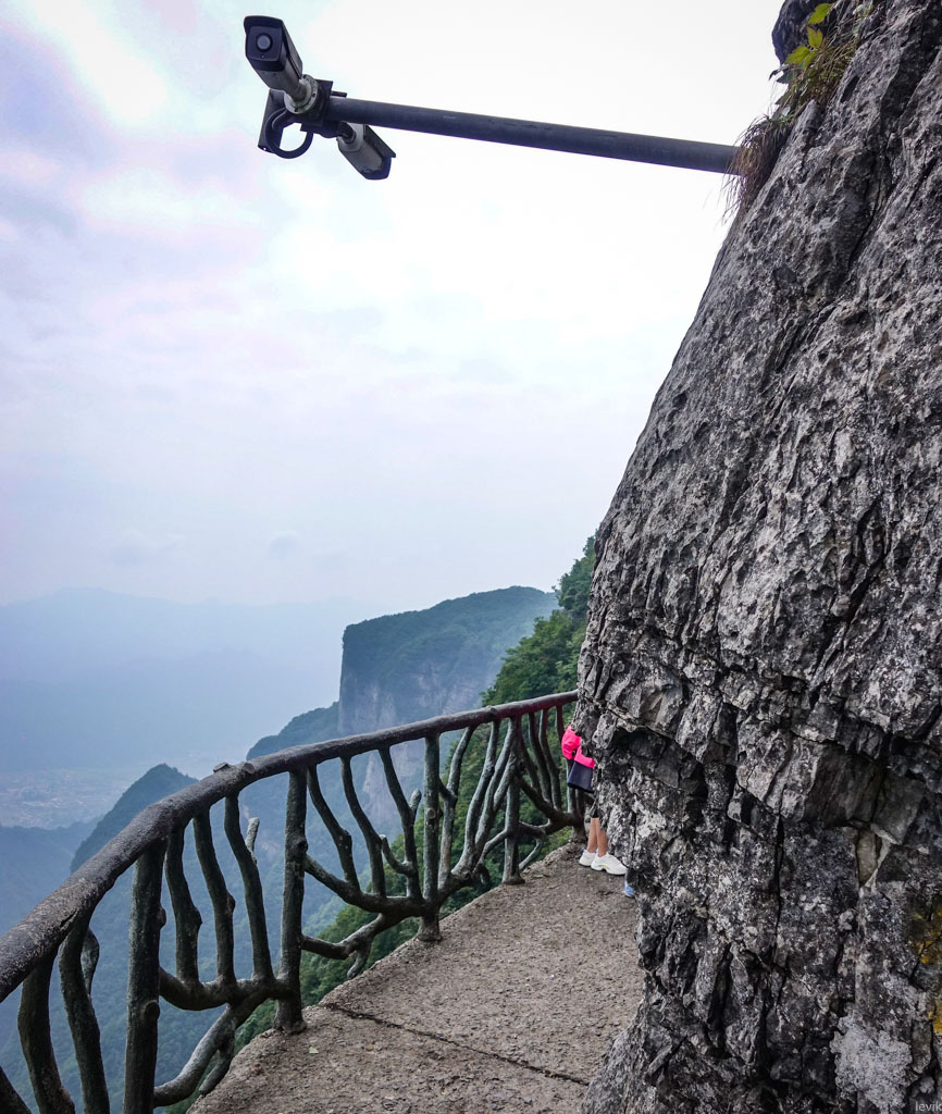 8. Даже в горных национальных парках Китая есть камеры. Вот так идёшь по узкой тропе над отвесным обрывом, а тебе в лицо смотрит неспящее око под козырьком...