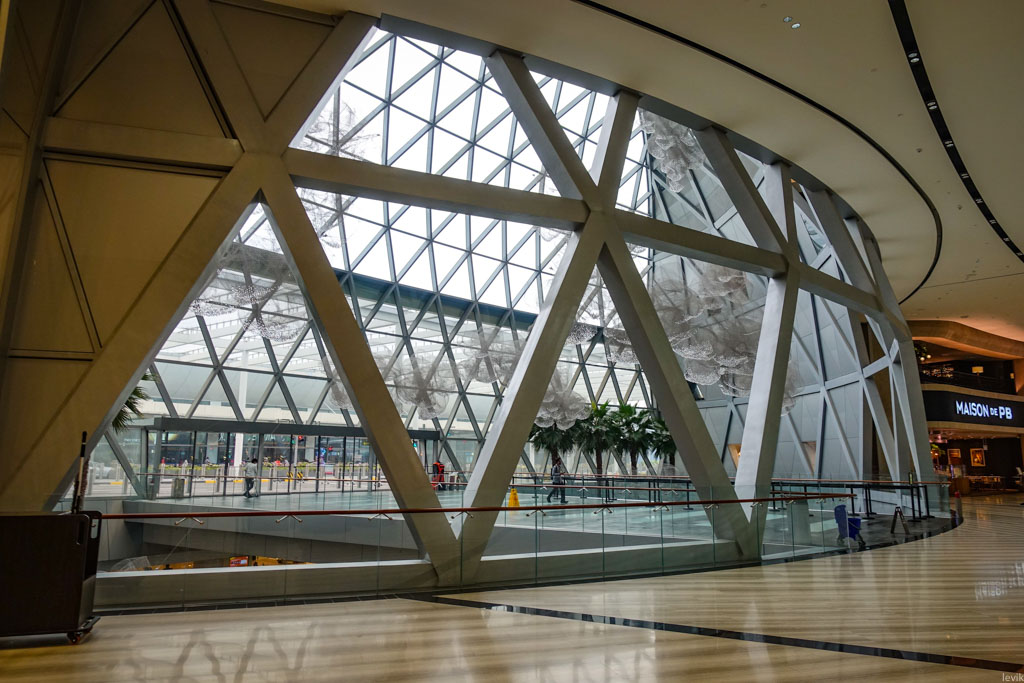 2. Мой вылет из Сингапура в Китай был в 10 утра, и я приехал сюда часов в семь, чтобы иметь где-то часик на исследование этого пространства. Думаю, это лучший способ посмотреть на Jewel - по прилёту в аэропорт вам наверное захочется как можно быстрей добраться до гостиницы, а перед вылетом выкроить немного времени - самое оно. Такси подвозит к главному входу в комплекс, через дорогу от которого находится первый терминал.