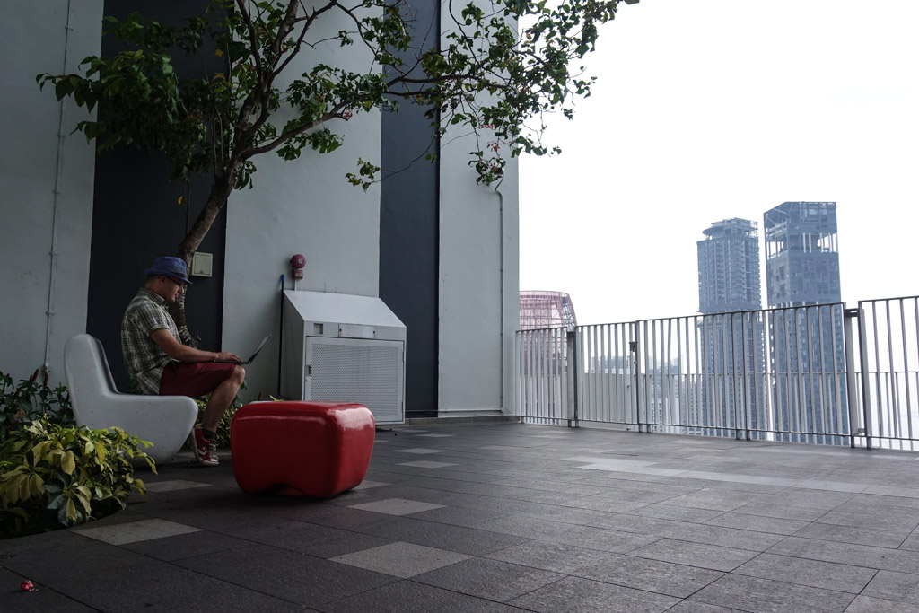 39. Поднялся на 50й этаж, жилого комплекса Pinnacle at Duxton, где находится крупнейший в мире парк в небе. Не просто поднялся, а даже устроил там утреннюю пробежку перед работой! А потом решил прямо оттуда немного поработать.