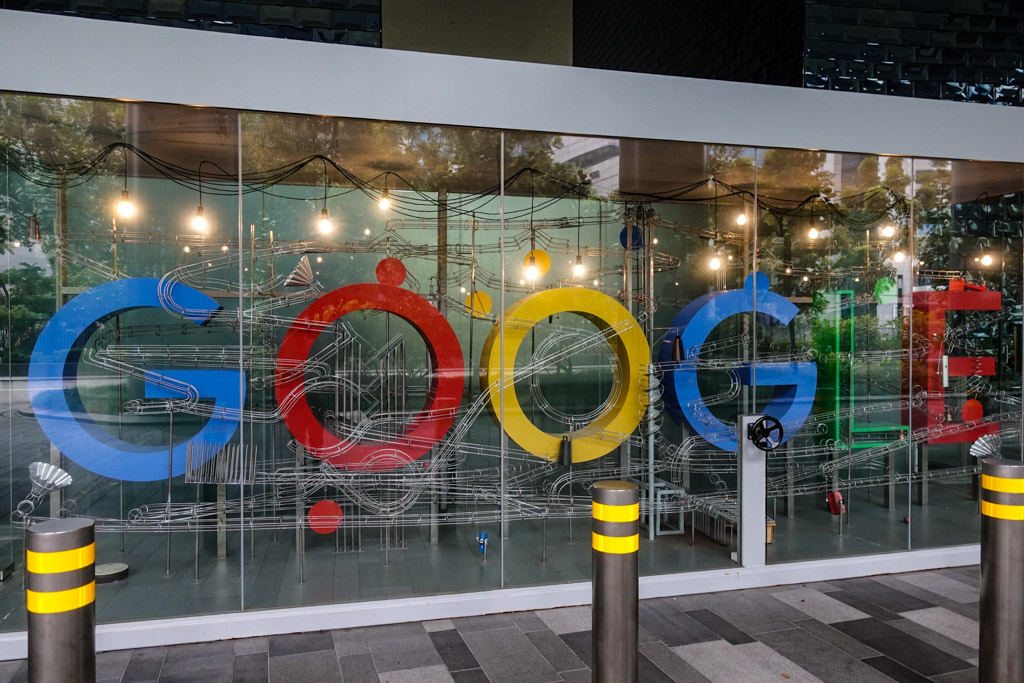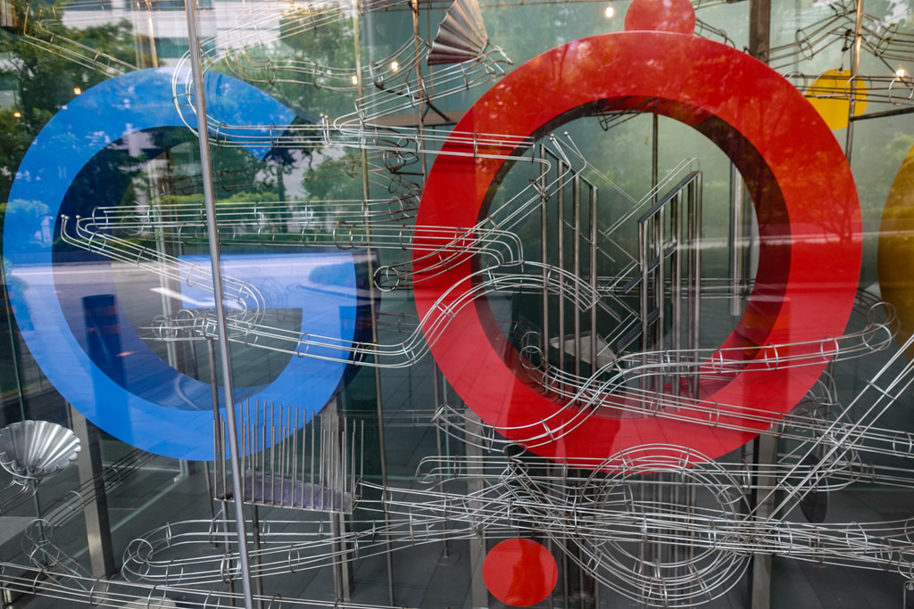 40. Но потом всё же решил поехать в офис. Перед входом у нас возвели великолепный агрегат: логотип Google в прозрачном ящике...