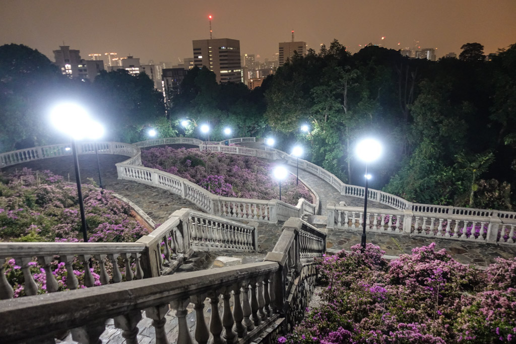 36. Оказывается, деревянный мост Henderson Waves красиво подсвечивают по вечерам. Красный свет добавляет этой конструкции таинственного же-не-се-ква.