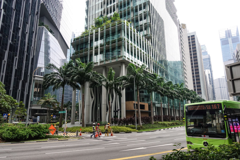 4. Сингапур вообще очень зелёный город. Тут по всюду на улицах пальмы и другие деревья, и даже некоторые автобусы зелёного цвета. Но вообще самое крутое тут в том, что растительность не ограничена уровнем земли, её можно увидеть на сколь угодно высоких этажах местных зданий.