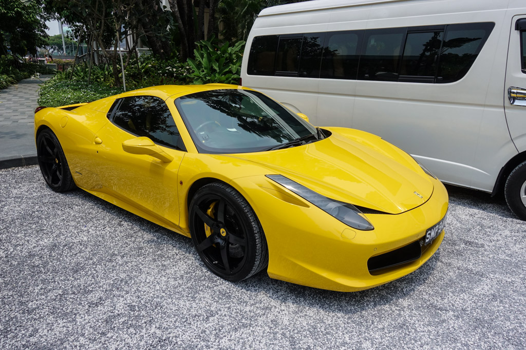 9. Феррари тут тоже есть. Молодёжно-жёлтого цвета.