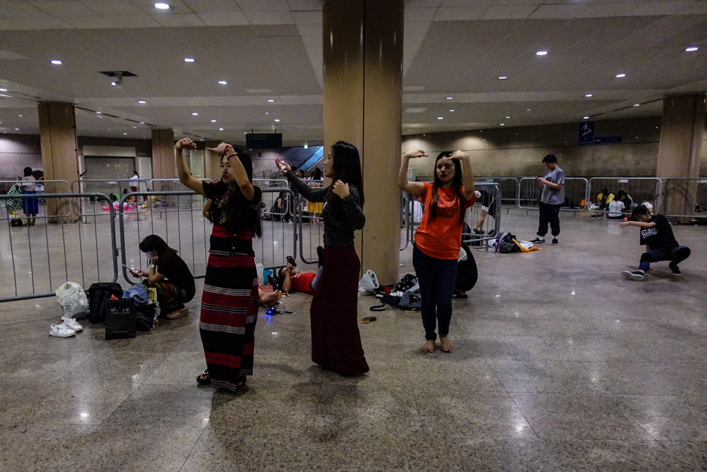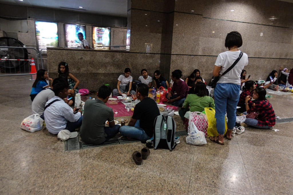 21. Как и в Гонконге, воскресенье - официальный выходной день для обслуживающего персонала. Они прохлаждаются в одном из подземных переходов. Устраивают пикники.