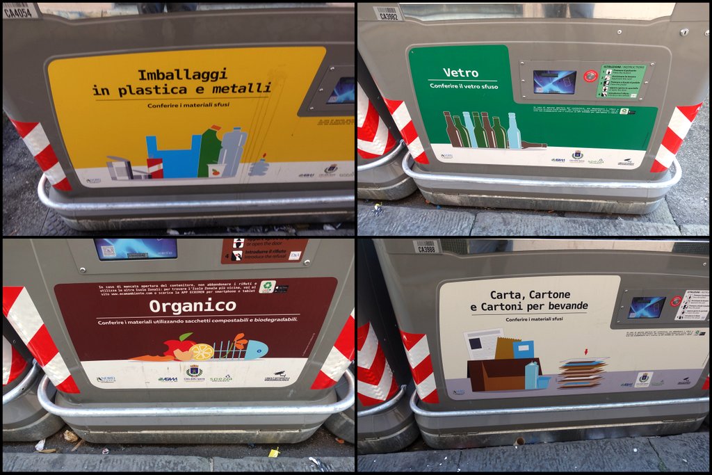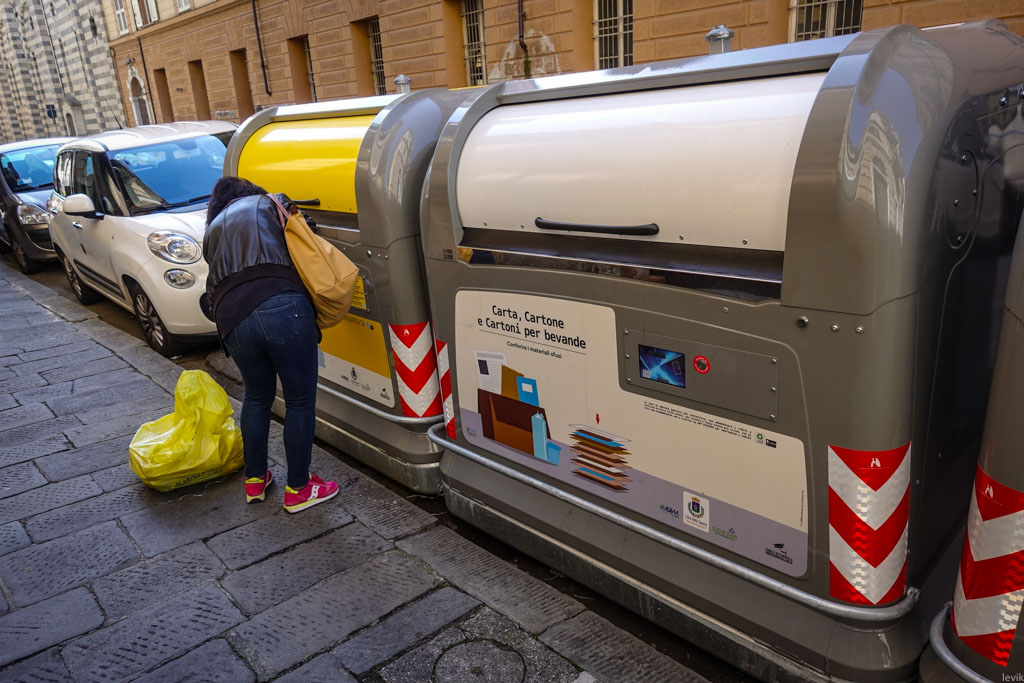 Подозреваю, что в Италии сбор мусора входит в компетенцию городских властей, поэтому, возможно не везде делают именно так, однако я знаю, что в Европе всё что связано с мусором довольно продвинуто - не знаю, как дела обстоят в России, но нам в США есть чему тут поучиться.