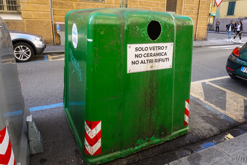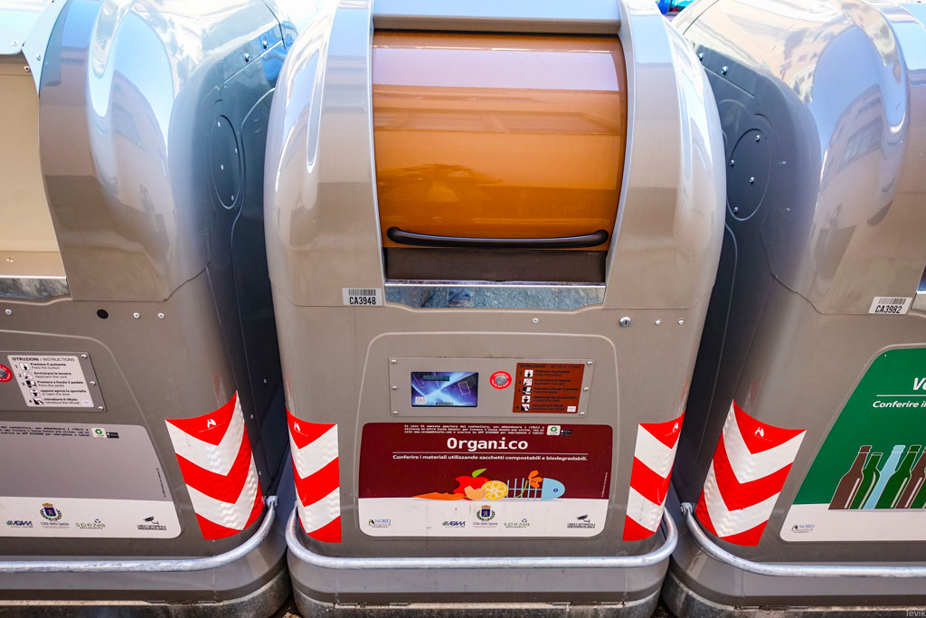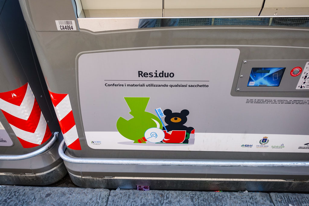 По дороге из Чинкве-Терре обратно во Флоренцию я остановился в небольшом городке по имени Специя (La Spezia). Пока ждал следующего поезда, пошёл прогуляться по улочкам вокруг железнодорожной станции. И наблюдал, как в этом городке устроен сбор мусора. Сказать, что я очень впечатлён - ничего не сказать.