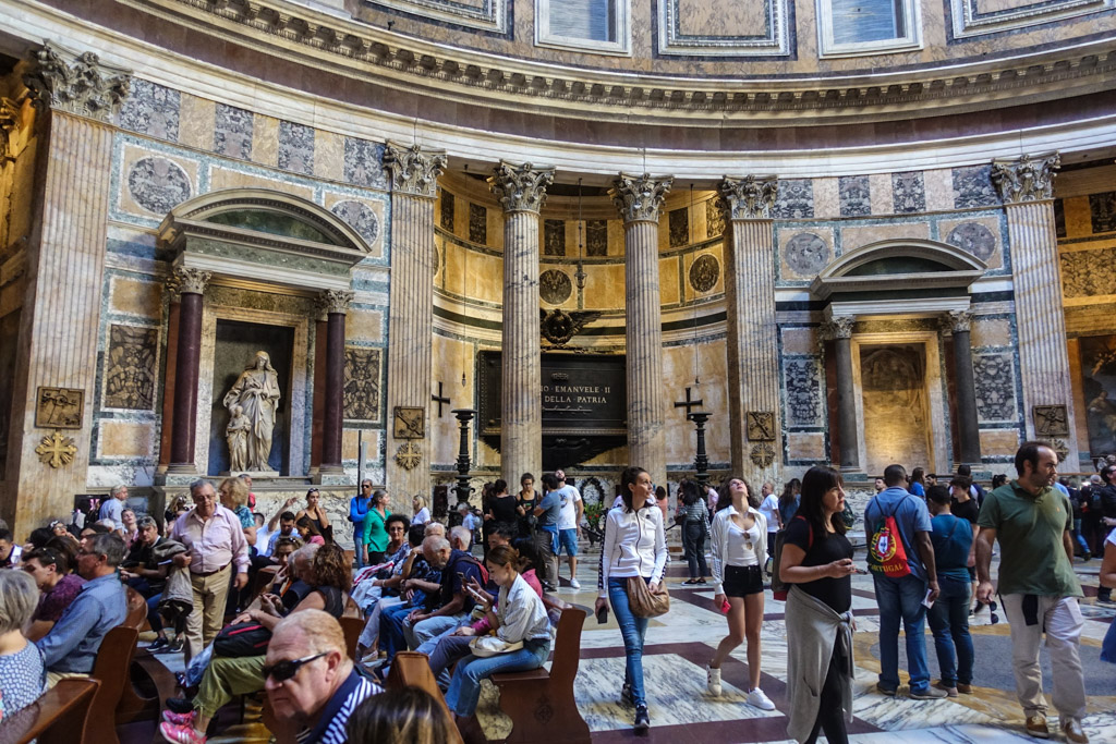 Внутри пространство под куполом представляет собой одно огромное помещение. Тут почти всегда много народу - здание очень популярно среди туристов. Ещё бы - почти две тысячи лет живой истории!