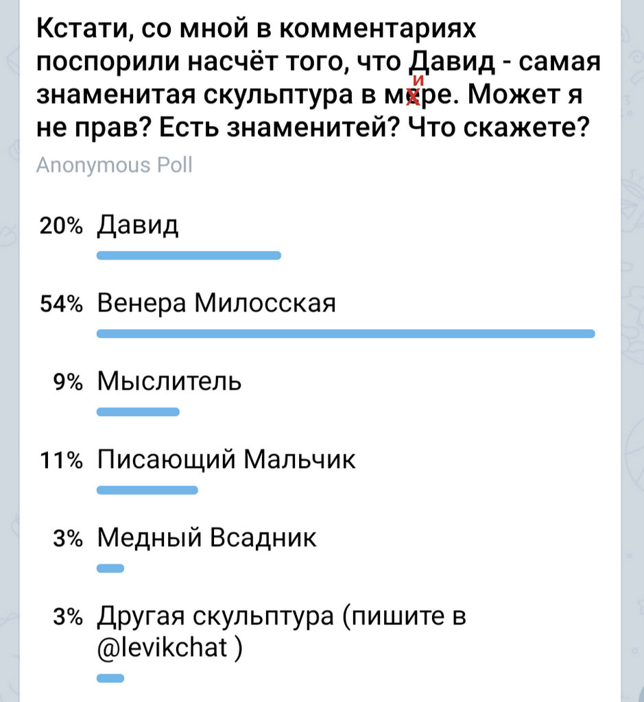 Сначала я оптосил читателей моего канала в Телеграме, предложив им в довесок ещё пару вариантов. При этом я так волновался, что сделал стыдную опечатку в слове "мире". Результаты голосования меня удивили: