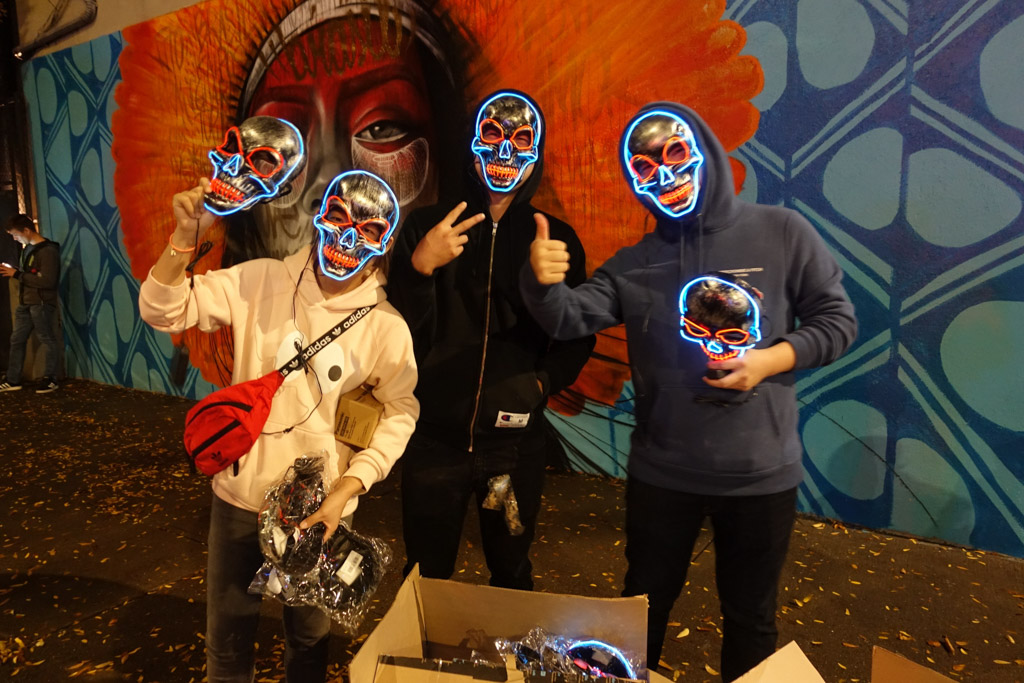35. Предприимчивые ребята продают их на улице прямо из ящика в квартале от парада. За каждую маску хотят $15. Неплохо.