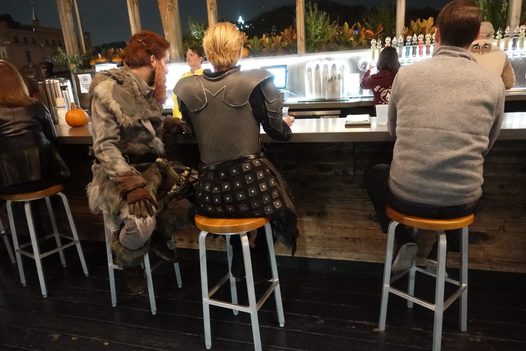 3. За баром сидели персонажи из Игры Престолов. Удивительно, но таких костюмов было не очень много, несмотря на дикую популярность сериала. Возможно он уже спел уйти из сознания всех кроме уличных музыкантов.