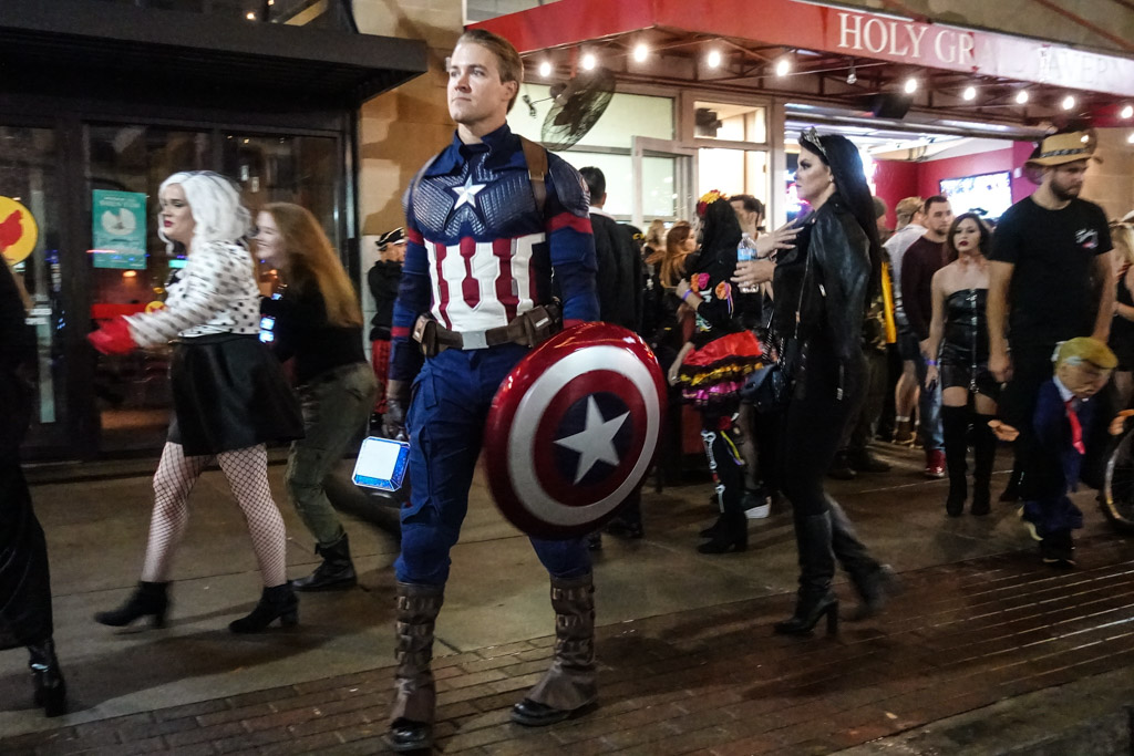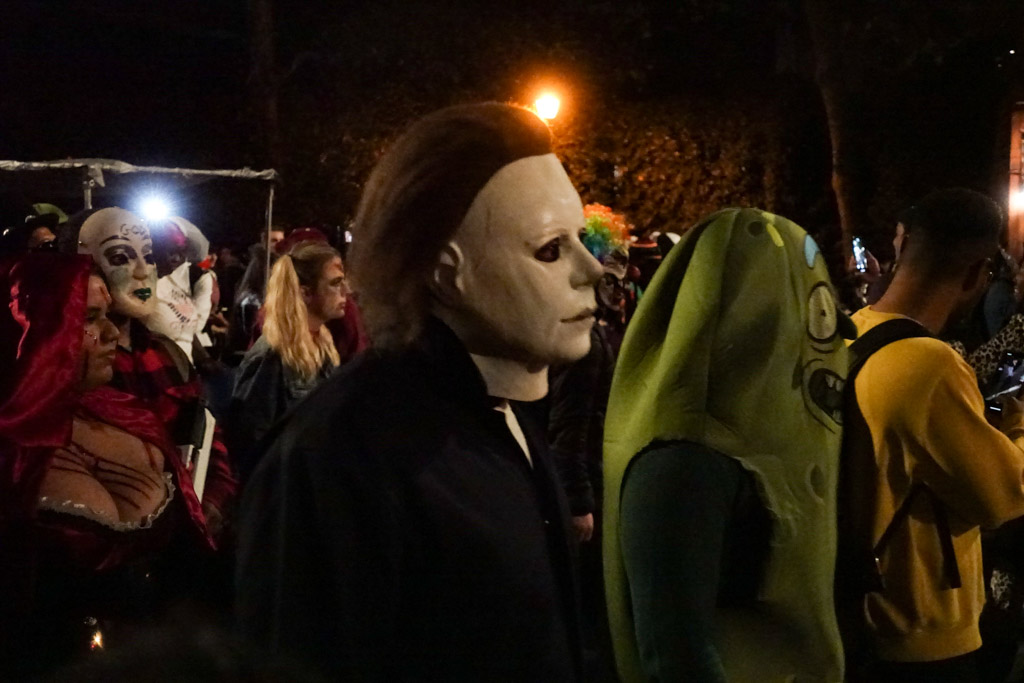 26. Гораздо интересней пошататься по улицам непосредственно возле пути шествия. Там гораздо меньше народу, но всё равно очень много ярких персонажей. Все охотно фотографируются, из-за чего те, что в самых хороших костюмах двигаются очень медленно.