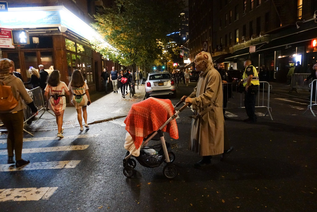 Вот такой Хэллоуин. Говорят где-то в другой части Нью Йорка, модель Хайди Клум щеголяла в каком-то невероятном костюме, на который ушло 12 часов чтоб его только надеть.
